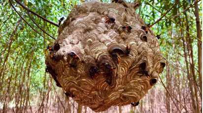 • Đặc điểm: Ong vò vẽ xây tổ trên cây, mái nhà, hoặc các cấu trúc cao. Tổ của chúng có hình dạng giống như quả bóng bầu dục, được làm từ giấy do ong tự tạo. Ong vò vẽ rất hung dữ và đốt rất đau.